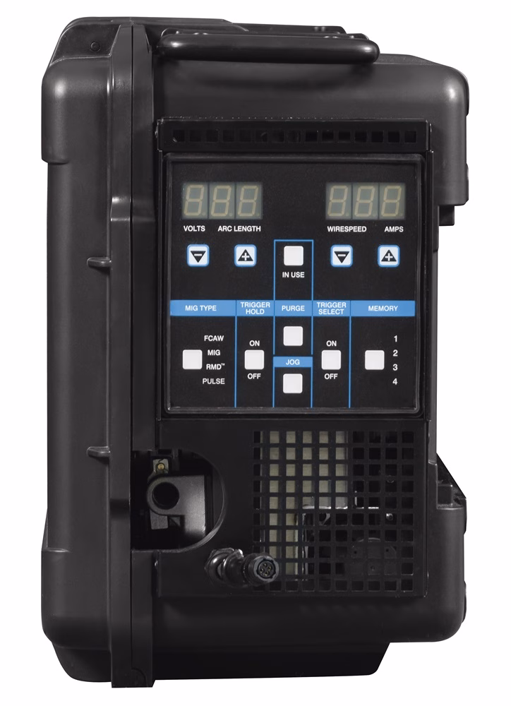 ArcReach Smart Feeder system delivers excellent RMD® and Pulse, MIG and Flux-Cored welding up to 200 feet away from the power source with no control cables. This system provides full remote control capabilities, including weld process selection, material type and wire diameter, gas type, wire feed speed and voltage from the feeder at the weld joint